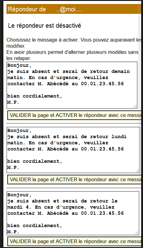 Choisissez le message à activer. Vous pouvez auparavant les modifier.